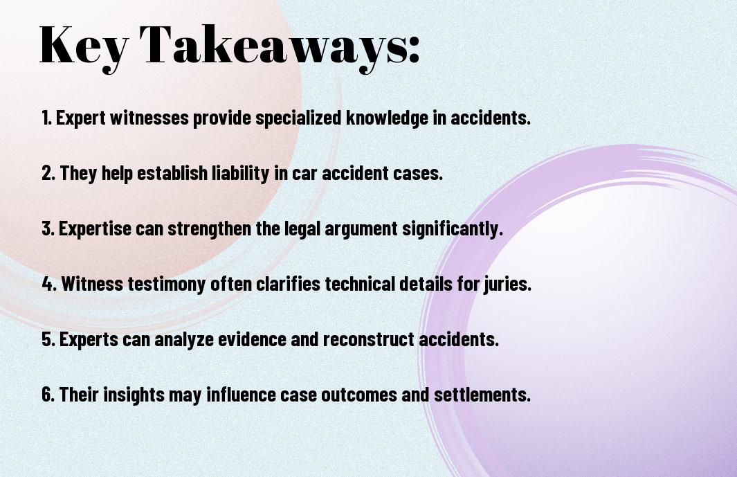 Many people underestimate the importance of expert witnesses in car accident cases, yet they can significantly impact the outcome of your claim. These professionals provide specialized knowledge that helps clarify complex issues, whether it involves accident reconstruction, medical assessments, or vehicle mechanics. Understanding the role of expert witnesses can empower you to make informed decisions about your legal strategy and strengthen your case. In this post, we will investigate into how these experts can benefit you in the aftermath of a car accident.